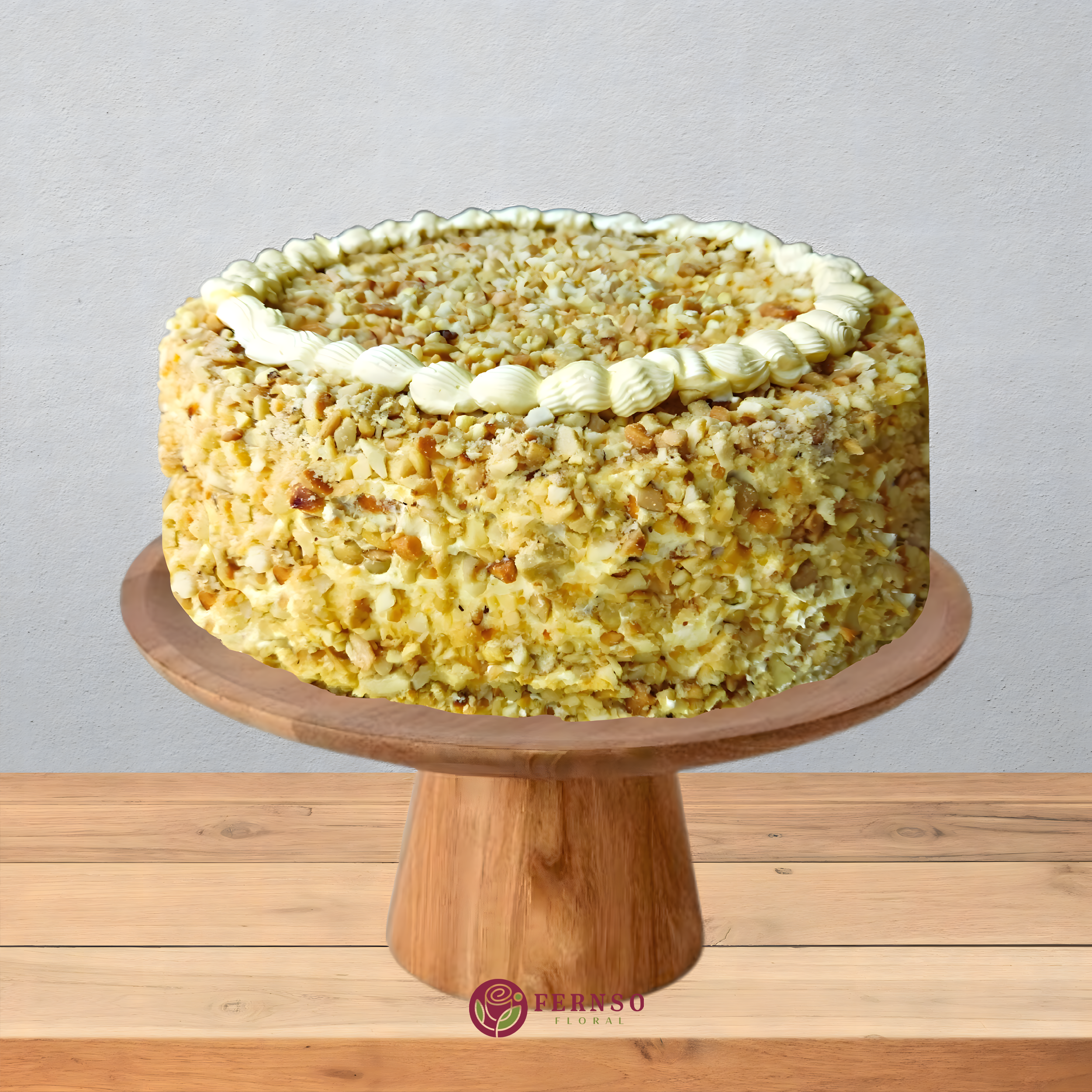 1 Kg Butterscotch Cake: A rich and indulgent delight made with layers of moist vanilla sponge infused with crunchy butterscotch praline and silky-smooth cream. This 1 kg cake is generously frosted with whipped cream, drizzled with caramel, and topped with crunchy butterscotch bits for a perfect blend of sweetness and crunch.