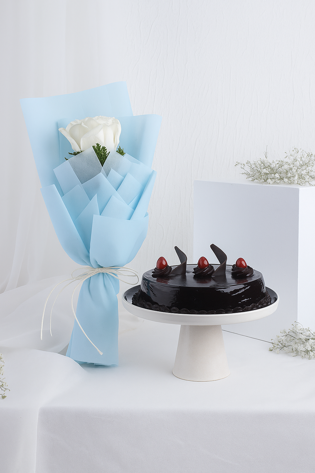 Chocolate Harmony – half Kg Truffle Cake with White Rose