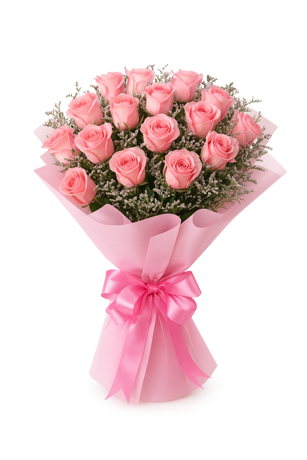 Delight your loved ones with this Elegant Pink Roses Bouquet, a stunning arrangement that exudes charm, grace, and beauty. Featuring 20 freshly hand-picked pink roses, this bouquet is carefully wrapped in premium soft pink paper and tied with a matching satin ribbon to create an elegant presentation. Pink roses are known to symbolize admiration, appreciation, sweetness, and joy, making this bouquet a thoughtful expression of your emotions.